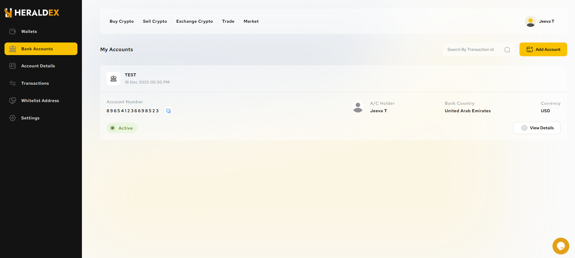 The Bank Account List feature provides users with a detailed overview of their linked bank accounts within Herald Exchange. It allows for efficient management and tracking of banking details associated with transactions.