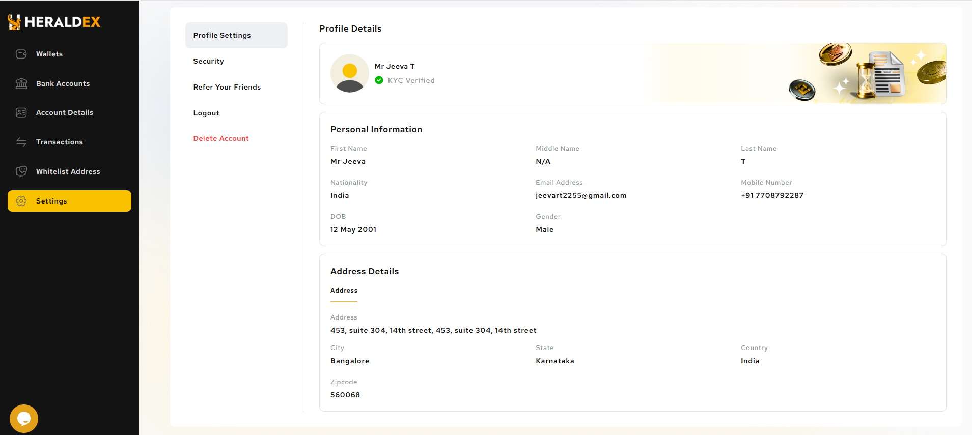 The User Profile Management section of HeraldEX provides users with the tools to manage their personal information, security settings, and account preferences effectively.
